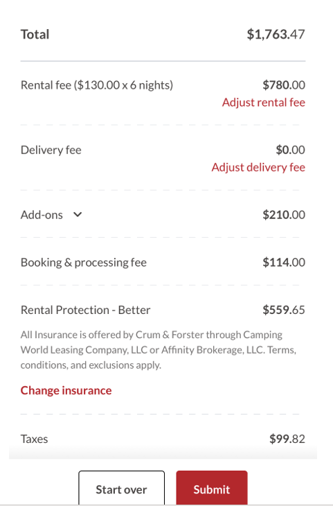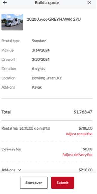 Please note that quotes are tied to the renter’s email that you enter. If your renter has an existing account with Good Sam RV Rentals, please make sure to use that email.