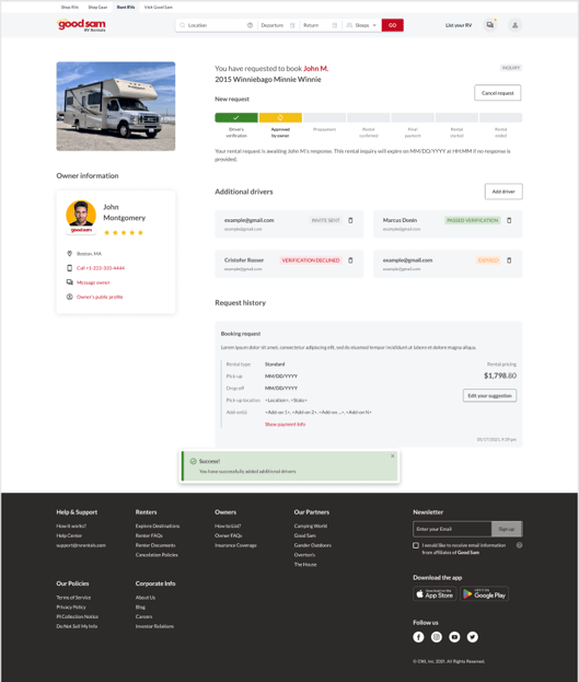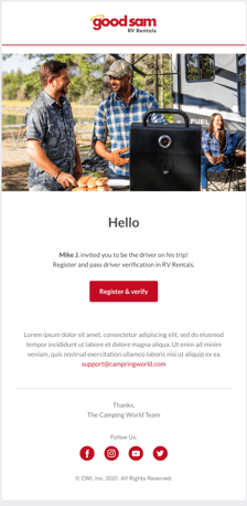 -An email with a link to sign into your existing Good Sam RV Rentals account or create one and start the verification process